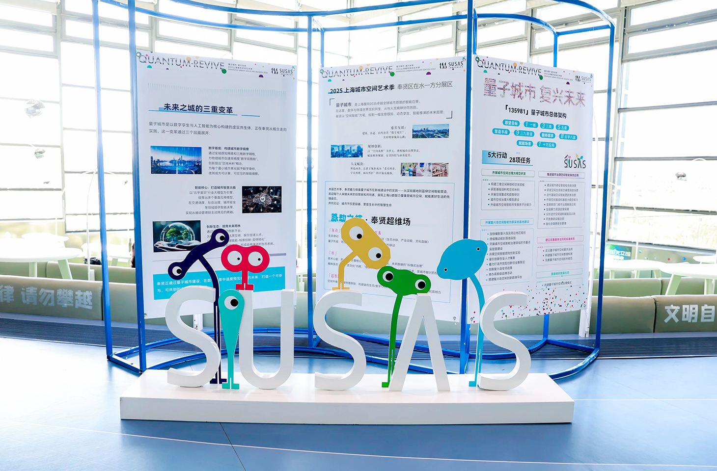 本次展览以艺术为桥梁,连接科技与文化在“上海之鱼”打造一场室内外联动的多维探索体验。展陈内容涵盖户外艺术装置、立体字体阵列、量子意象导视系统以及室内主题展板所构建的信息场域,以奉贤“贤文化”为精神原点,与三维城市空间和数智新装备产业技术相结合,实现历史、现实与未来数据的串联,具体呈现为生态水脉的持续滋养、产业动能的量子跃迁与文化基因的绵延传承。展览旨在通过科技与艺术的相互赋能,生动诠释奉贤在量子城市空间方面的创新理念与建设成果,并凸显其兼具创新性、融合性、科技感与未来感的城市发展愿景,引领观众步入一场虚实交织的认知升级之旅。